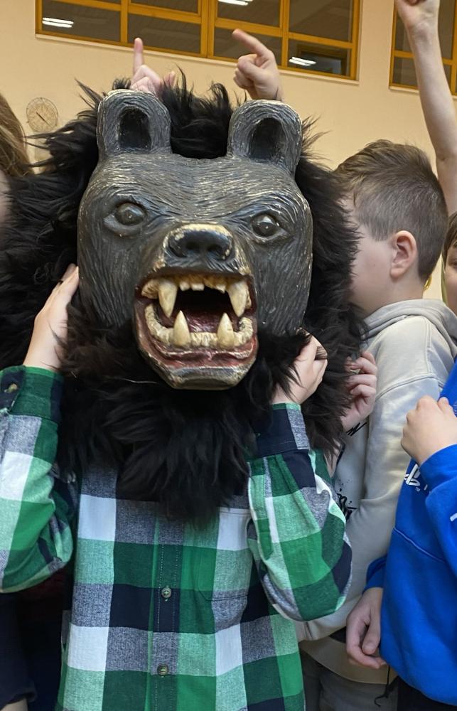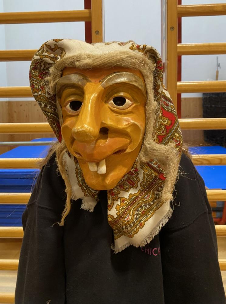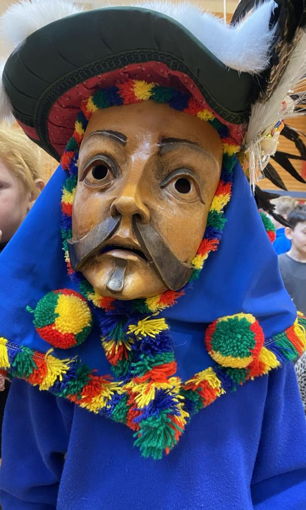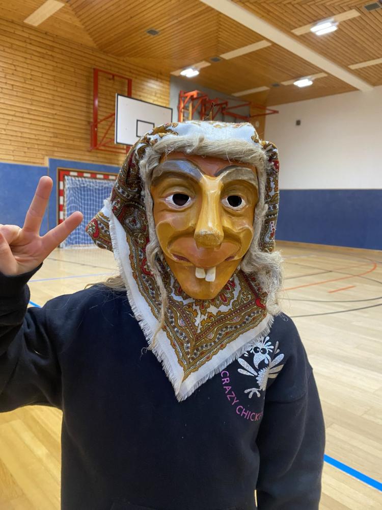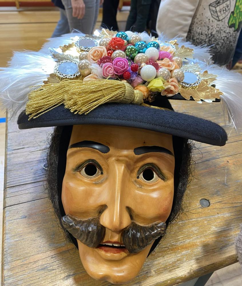 Die Kinder hörten einiges über die Geschichte der Muller und die Bedeutung der einzelnen Figuren und Tänze, wer aller mullen darf und wie man ein richtiger Muller wird. Anschließend konnten sie sich die mitgebrachten Masken genau ansehen, angreifen und sogar aufsetzen.