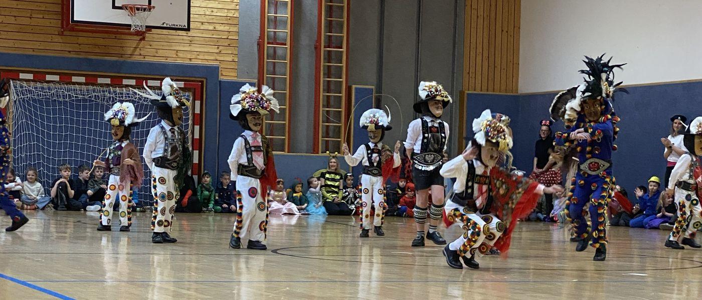 Da der Unsinnige Donnerstag heuer in die Semesterferien fiel, luden wir die Jungmuller am Faschingsdienstag zu einem Auftritt an unsere Schule ein. Mit großer Begeisterung verfolgten die Volksschülerinnen und Volksschüler sowie die Kinder aus dem Haus der Kinder Langer Graben das bunte und energiegeladene Treiben.